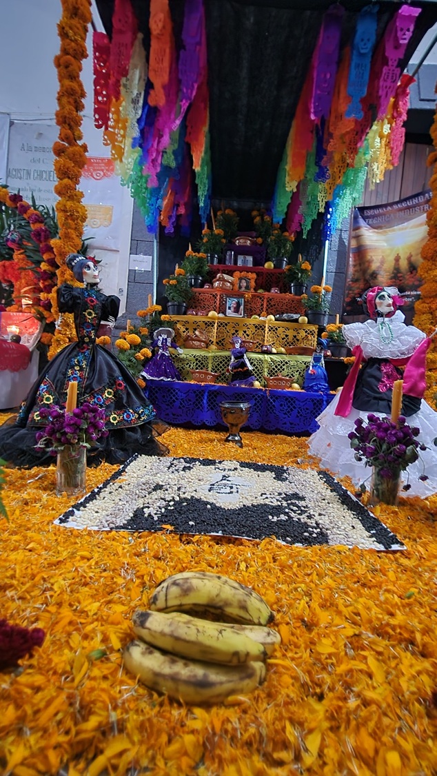 Los altares, símbolo de amor y memoria, representan el reencuentro entre la vida y la eternidad. Cada ofrenda honra la herencia mexicana del Día de Muertos, con flores de cempasúchil, velas y el tradicional pan de muerto que dan vida a este homenaje lleno de color y significado.