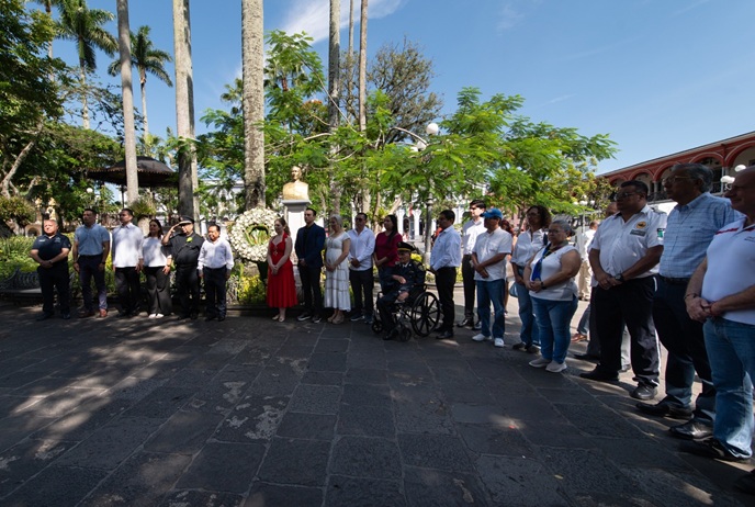 La ceremonia realizada en la explanada del parque 21 de Mayo, comenzó con el izamiento del Pabellón Tricolor a cargo del regidor sexto Sergio Armando de la Llave Migoni. El juramento a la bandera fue pronunciado por el bombero Heriberto Reyes Arévalo. Y el Himno Nacional Mexicano y de Veracruz fue entonado por los presentes con el acompañamiento de la Banda de Música Municipal.