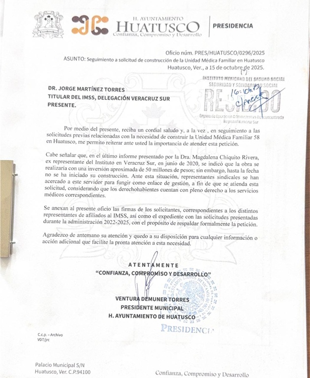Se dio a conocer que aunque el proyecto esta aprobado, aun no fue contemplado en la ley de egresos para el 2026, pero se mantiene firme el compromiso y lo ya registrado para que Huatusco en un futuro próximo cuente con la Unidad Médica Familiar.