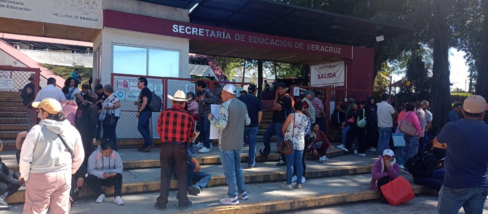 Irineo Pérez Melo.- Padres de Familia de alumnos que asisten al Telebachillerato de la congregación Loma Grande del municipio de Mariano Escobedo, Veracruz, se manifestaron pacíficamente en las oficinas centrales de la Secretaría de Educación de Veracruz (SEV), para exigir la asignación de dos maestros que les falta desde el inicio del presente ciclo escolar 2025-2026.