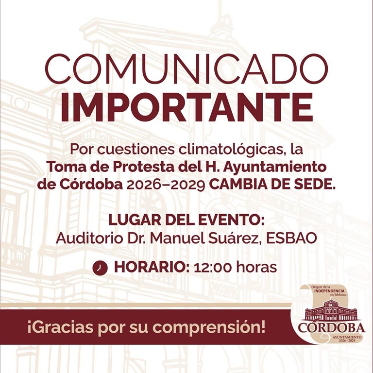 Ante las circunstancias climatológicas, el “cuarto de guerra” del presidente municipal electo, anuncia un cambio de sede para la toma de protesta que realizará como presidente municipal, Manuel Alonso Cerezo y miembros del cabildo.